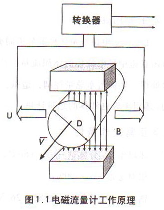 在圖1.1中,當(dāng)導(dǎo)電流體以平均V(m/s)通過裝有一對測量電*的一根內(nèi)徑為D(m)的絕緣管子流動時,并且該管子處于一個均勻的磁感應(yīng)強(qiáng)度為B(T)的磁場中。那么,在一對電*上就會感應(yīng)出垂直于磁場方向和流動方向的電動勢(E)。由電磁感應(yīng)定律可寫做(1)式: