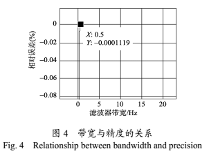 由圖4可知,當(dāng)濾波器的通帶帶寬大于0.5Hz左右時(shí),處理結(jié)果的相對(duì)誤差非常接近于零,而當(dāng)帶寬小于0.5Hz時(shí),濾波器的特性變壞,削弱了有用分量,使得相對(duì)誤差發(fā)生顯著變化。為了避免這個(gè)影響,選取濾波器的通帶帶寬應(yīng)大于0.5Hz。