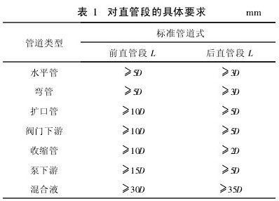 流體在方向、管徑以及閥門開度變化時,會產(chǎn)生渦流和流場畸變,這樣會對傳感器電*的測量產(chǎn)生影響,從而影響儀表的精度。所以要盡可能地離開彎管、手閥、調(diào)節(jié)閥等部件一定距離,直管段的具體要求見表1。表中,D表示管道通徑,L表示傳感器到閥門或彎頭等部件的距離。