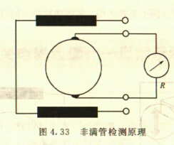 非滿(mǎn)管檢測(cè)也是基于電導(dǎo)率檢側(cè)的方法。在圖4.33所示的電磁流量傳感器中,增加了一個(gè)(或一對(duì))非滿(mǎn)管檢測(cè)電*。當(dāng)導(dǎo)管內(nèi)液體滿(mǎn)管時(shí),頂部電*與其他電*之間的電阻值很小;而當(dāng)存在非滿(mǎn)管情況時(shí),頂部電*與導(dǎo)電液體之間有氣體阻隔,所以電*電阻顯著增大,從而做出非滿(mǎn)管判斷。
