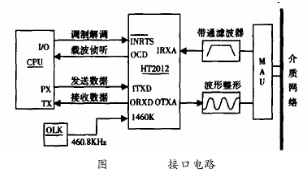 HT2012芯片用來(lái)實(shí)現(xiàn)HART協(xié)議中通訊信號(hào)的解調(diào)及調(diào)制過(guò)程。圖2為調(diào)制解調(diào)器與微處理器的連接。
