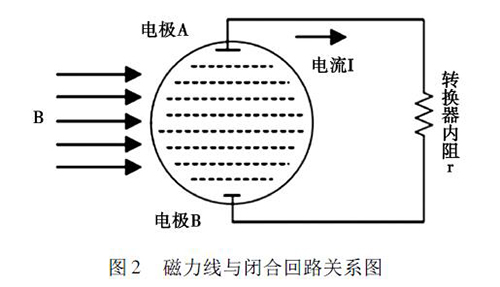 2. 1 正交干擾粘土漿流量計的磁路系統包含有兩個勵磁線圈,而導管內的液體與傳感器電*及轉換器結構組成了一個閉合的回路,如圖2 所示。理論情況下,磁力線( 圖中B) 應與閉合回路相平行,但是由于裝配過程中的誤差,導致磁力線不可能完全平行于這一閉合回路,出現部分磁力線成一定角度穿過回路的現象,這引起了即使沒有液體流動的情況下,傳感器的電*上也會產生感應電動勢,就形成了正交干擾的基本形式。
