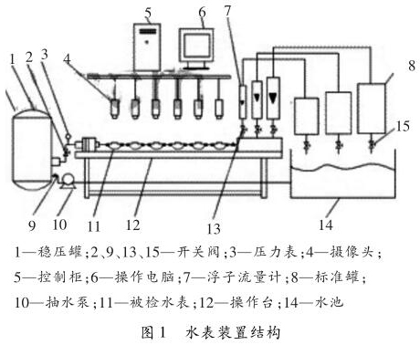 水表檢定裝置是全自動(dòng)水表校驗(yàn)裝置,水表檢定裝置以計(jì)算機(jī)為核心,它在需要檢定水表上方安裝攝像裝置,連接到圖像采集和高速計(jì)算器中,計(jì)算器可以識(shí)別水表指針的流量數(shù)值,自動(dòng)控制水流量,實(shí)現(xiàn)水表檢驗(yàn)的全自動(dòng)化,針對(duì)水表檢定裝置存在的問題提出解決方案,減少水表檢定裝置在使用過程中出現(xiàn)質(zhì)量問題,讓水表檢定裝置可以不斷完善。