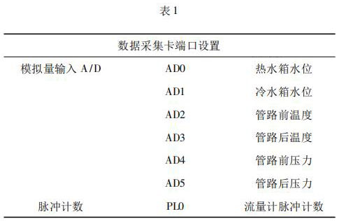 數(shù)據(jù)采集系統(tǒng)由工控機、熱水流量計以及數(shù)據(jù)采集卡組成。 4000 次冷熱沖擊試驗要求在在*大流量 qs 條件下運行,對流量數(shù)據(jù)的采集用到熱水流量計及數(shù)據(jù)采集卡。熱水流量計采集管路流量,數(shù)據(jù)采集卡將熱水流量計采集到的數(shù)據(jù)反饋給工控機系統(tǒng)。過程中,試驗管路水溫以及水箱水位的采集控制也是通過數(shù)據(jù)采集卡反饋給系統(tǒng)控制。試驗過程用到的數(shù)據(jù)采集卡采用研華生產(chǎn)的PCI - 1711。PCI - 1711 是一款多功能 PCI 總線數(shù)據(jù)采集卡,具有 16 路單端模擬量輸入功能、2 路 12位模擬量輸出功能、16 路數(shù)字輸入和 16 路數(shù)字輸出功能、計數(shù)器功能等。為保證冷熱沖擊試驗結(jié)果的準(zhǔn)確性,嚴(yán)要求嚴(yán)格控制管路流量以及管路壓力。因此,管路設(shè)置前后管路溫度、冷熱水箱水位以及管路壓力的采集,管路流量根據(jù)熱水流量計脈沖計數(shù)進(jìn)行采集,其數(shù)據(jù)采集卡端口設(shè)置如表 1 所示。