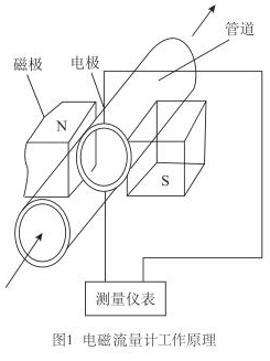 廢水流量表是應(yīng)用電磁感應(yīng)定律,即:導(dǎo)電體在磁場中運(yùn)動產(chǎn)生感應(yīng)電動勢,而感應(yīng)電動勢又和流量大小成正比,通過測電動勢來反映管道流量的原理而制成的,用來測量導(dǎo)電流體的體積流量(見圖1)。工業(yè)上多用以測量水、礦漿、各種酸、堿、鹽等腐蝕液體等介質(zhì)的流量。