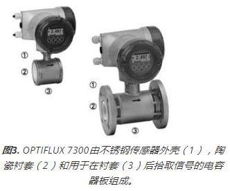 所述OPTIFLUX 7300是一個EMF設有陶瓷襯墊,非潤濕電容電*和IFC 300轉換器(圖3)。電*是安裝在陶瓷襯里后面的大面積電容器板。非接觸式電容信號拾取是OPTIFLUX 7300的另一個優(yōu)勢,它消除了金屬組件不必要的催化作用。另外,電*的絕緣確保安全。